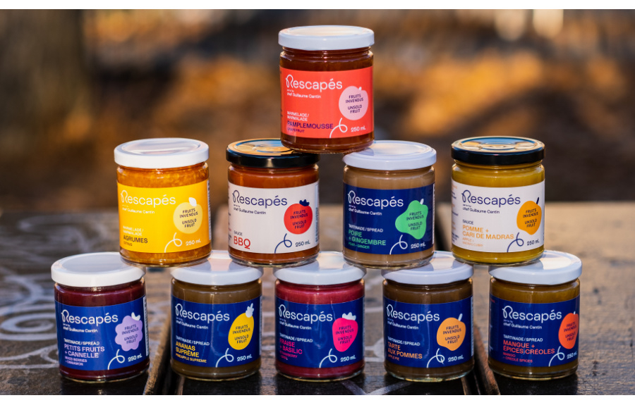 Les pots Rescapés se taillent dorénavant une place de choix sur les étalages grâce à un impact visuel actualisé, lequel met non seulement en valeur l’usage de fruits invendus et rescapés du gaspillage, mais aussi le chef derrière les délicieuses recettes : Guillaume Cantin. Un emballage qui raconte une mission et rappelle que chaque petit geste compte.