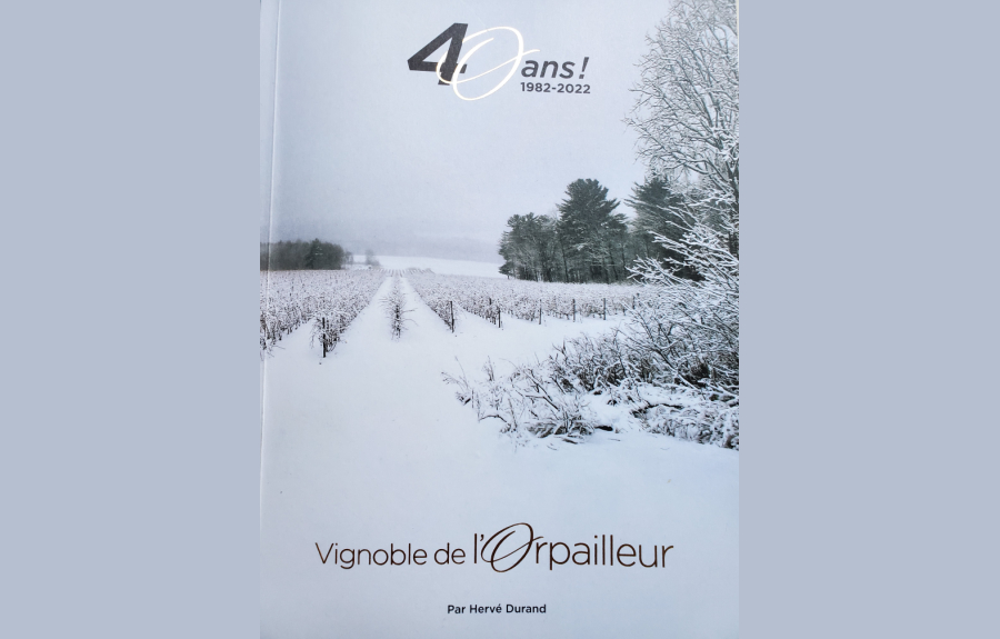 Le copropriétaire de Vignoble de l’Orpailleur, Hervé Durand, a lancé au printemps 2022 le bouquin 40 ans! 1982-2022, Vignoble de l’Orpailleur. Le nom de l’Orpailleur a été suggéré par notre célèbre chanteur-poète national Gilles Vigneault référant ainsi au travail intense et ardu des chercheurs d’or! Effectivement, selon Gilles Vigneault, l’Orpailleur (chercheur d’or), c’est celui qui lave les alluvions aurifères pour en extraire par temps, science et patience les paillettes d’or qui s’y trouvent alors que le viticulteur met science, patience, le temps qu’il fallait pour extraire de la terre québécoise un vin blanc, sec, unique…