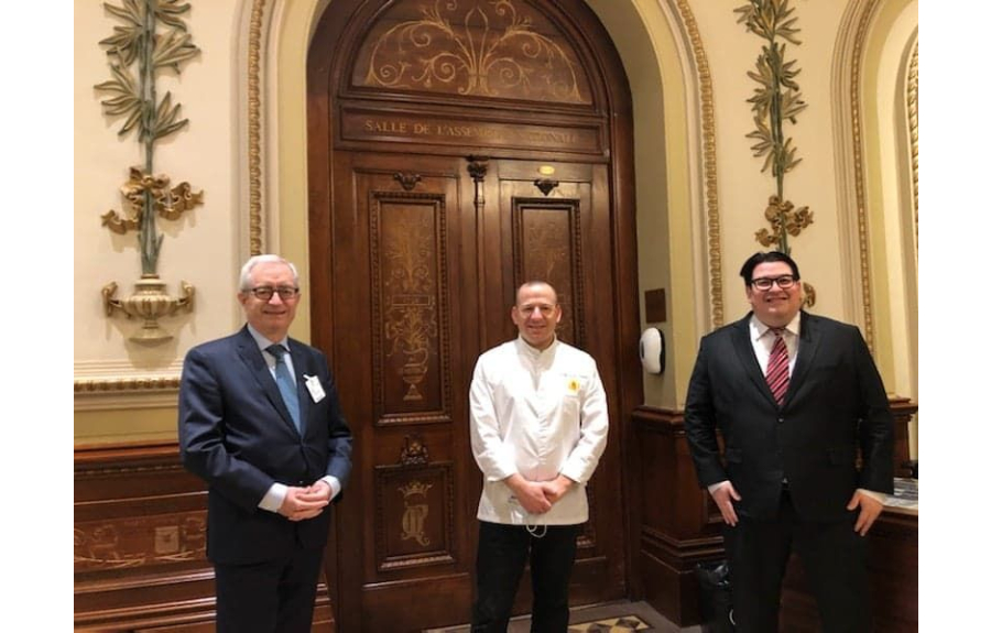 Le chef de renommée internationale Marc de Passorio, qui a pris, tout récemment, la barre du restaurant La Traite de l’Hôtel-Musée Premières Nations, a été salué ce matin par l’Assemblée nationale du Québec à l’initiative du député de Chauveau, M. Sylvain Lévesque. Le député et whip adjoint du gouvernement a tenu à souligner chaleureusement l’arrivée du nouveau chef exécutif, lui souhaitant ses meilleurs vœux de succès.