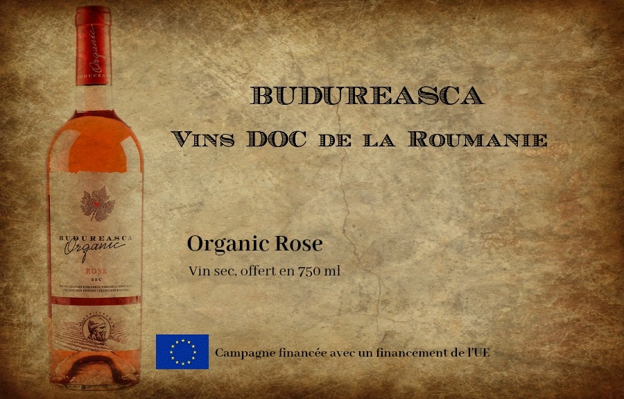 J’ai dégusté le Budureasca Organic Rosé biologique, sec 2017 D.O.C. Dealu Mare. Cépage Merlot, 13,5° d’alcool.