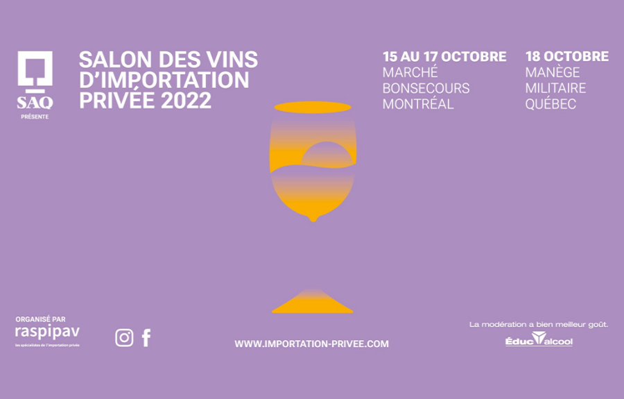 Les amoureux des IP se donnent rendez-vous en présentiel au Salon des vins d'importation privée 2022, présenté par la SAQ, du 15 au 17 octobre au Marché Bonsecours de Montréal et le 18 octobre au Manège militaire Voltigeurs de Québec.