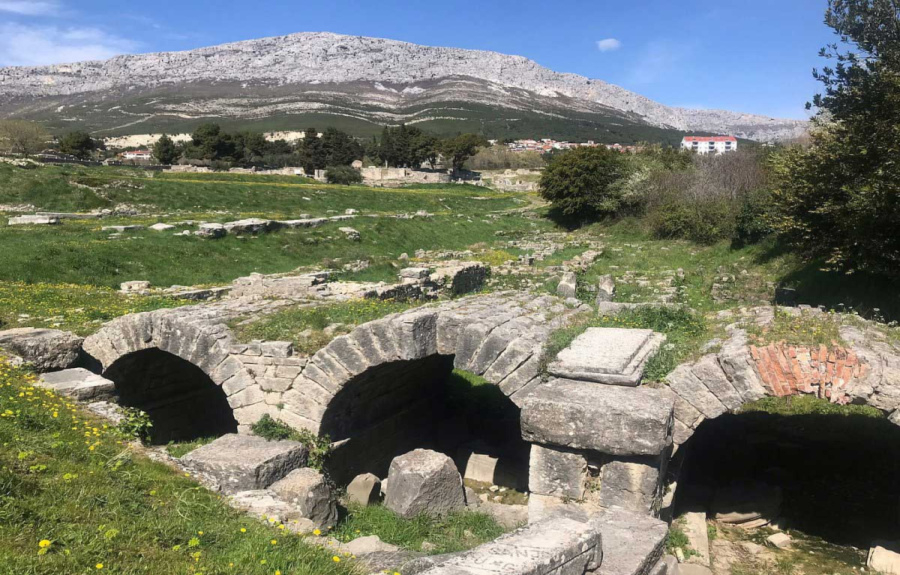 Solin, berceau de l’histoire. Au Moyen Âge, le territoire urbain de Salona, établi à la fin de la République romaine, se trouvait, entre les trois centres importants, qui se sont souvent affrontés : les villes de Trogir et Split et la forteresse de Klis, qui, depuis longtemps, était entre les mains des familles nobles croates, puis dans les mains des Turcs. Ces circonstances définissent le destin de l’ancienne ville de Salona, aujourd’hui la ville de Solin, et de tous ses alentours…