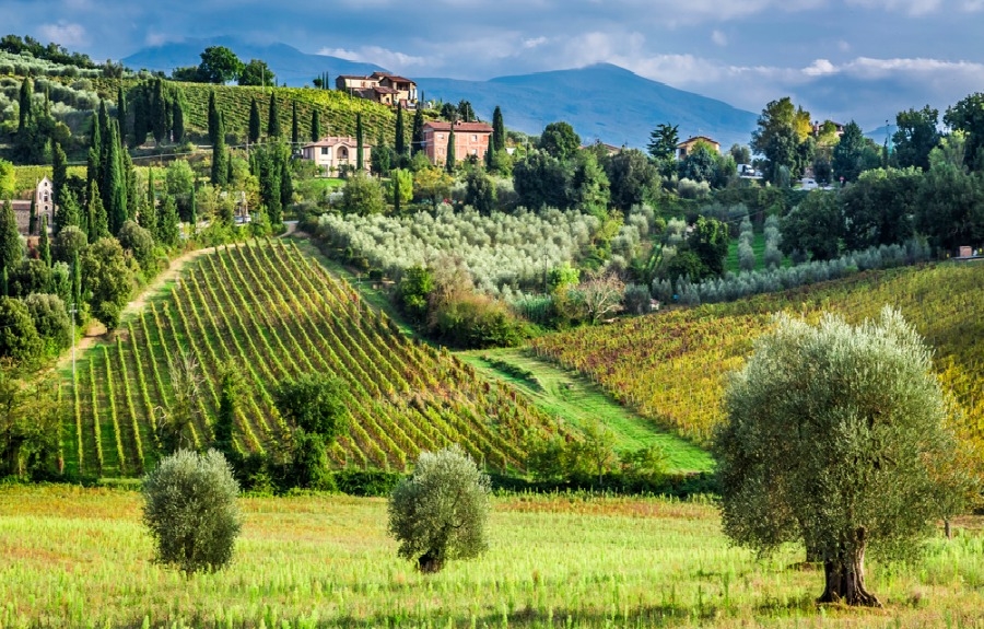 C’est ensuite le temps de partir explorer ce pays du vin. Dans le Chianti, un endroit de choix s’offre à vous. En plein cœur de la zone Classico, perché sur une colline qui offre un panorama inégalé, se trouve l’ancien petit bourg de Castagnoli. Le domaine Rocca di Castagnoli a restauré la Résidence et ses dépendances, afin de vous proposer hébergement, restauration et dégustation dans un cadre superbe. Les chambres et les appartements sont aussi charmants que confortables. La paix qui y règne à la tombée de la nuit vaut son pesant d’or. La piscine et sa vue sur les vignobles vous combleront, si le temps le permet. L’équipe d’accueil pour déguster les vins est super sympathique. Découvrez le Molina delle Balze, un chardonnay délicieux, minéral et fruité. Le chianti classico est marqué par les fruits rouges et le poivre. Le Poggio a Frati est un classico riserva à la texture veloutée et au très bel équilibre. Délicieux maintenant, mais dans 5-10 ans, il vous renversera encore plus! Leur haut de gamme est le Stielle, un rosso di Toscana, à base des plus vieilles vignes du domaine, et d’un clone de sangiovese qui lui est propre. Bref, c’est un endroit magique pour débuter votre périple vinicole.