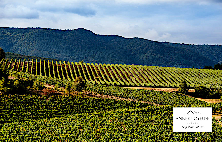 Le domaine d’Anne de Joyeuse est né de l'unification de plusieurs vignobles dont les propriétaires ont mis leurs terres et leurs compétences en commun en 1929 pour fonder un chai destiné à la vinification de vins rouges. Ils ont choisi le nom d’Anne de Joyeuse en hommage au duc de Joyeuse, favori d’Henri III, qui avait su vanter les mérites du vin de Limoux. Précisons qu’au XVIᵉ siècle, le prénom Anne, comme le prénom Claude, était porté autant par des hommes que par des femmes. Le Duc Anne de Joyeuse se disputait avec le Duc François de Montmorency le titre de plus bel homme du Royaume de France.