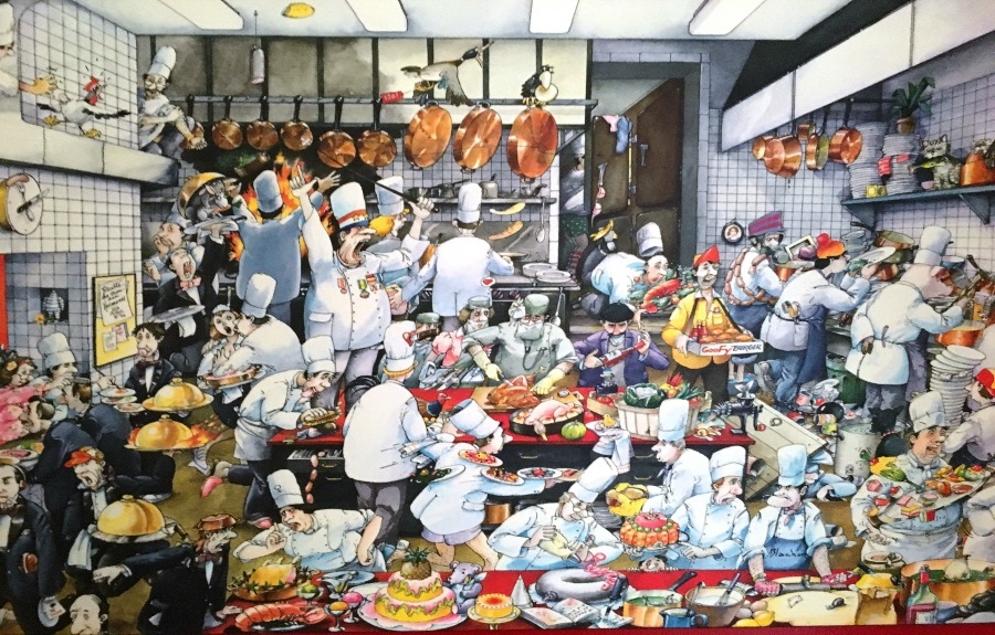 La célèbre affiche dessinée par Roger Blachon, représentant une caricature d'une cuisine en folie, qui a été très populaire dans les années 80, a toujours gardé une fascination, autant auprès du public que des cuisiniers.
