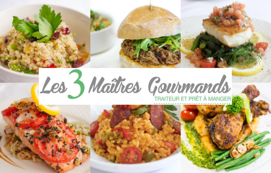 Les 3 Maîtres Gourmands proposent 70 choix en prêt-à-manger, et en traiteur, trois menus « corporatif », quatre menus « buffet chaud », trois menus « cocktail » et trois menus « déjeuner ou brunch ». En prêt-à-manger, si l’item n’est pas populaire, il est retiré aussitôt.