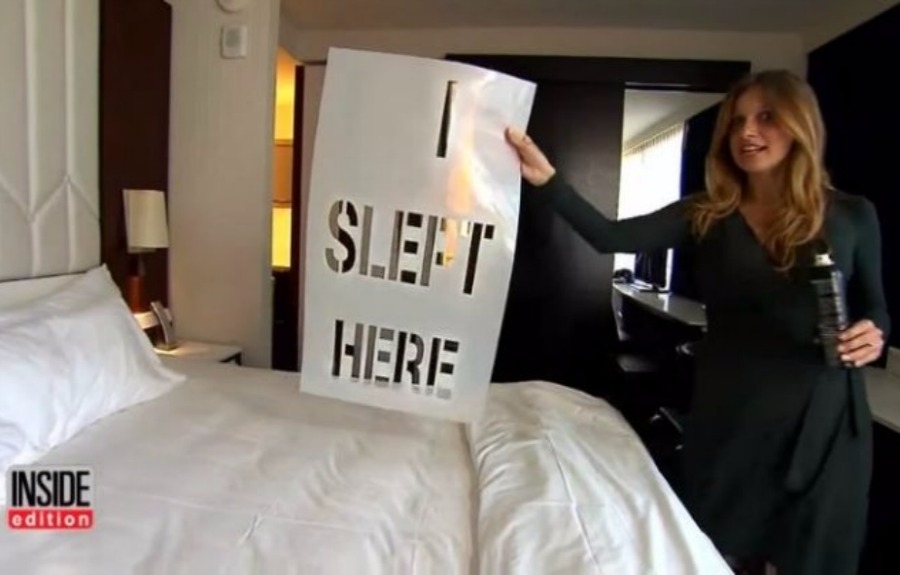 Neuf chambres d'hôtel réservées par l’équipe ont servi de groupe test. Chaque fois, ils ont pulvérisé une peinture fluorescente inoffensive et lavable sur les draps, en utilisant un pochoir sur lequel on pouvait lire: « I Slept Here ». Il est impossible de voir que quelque chose est écrit ici sans utiliser une lumière UV spéciale.