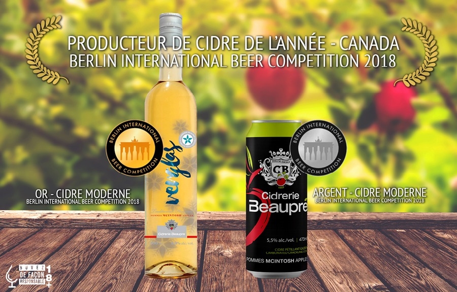 La Cidrerie Beaupré a remporté les grands honneurs de la Berlin International Beer Competition (BIBC), elle a raflé notamment le titre de Producteur de cidre de l'année - Canada.