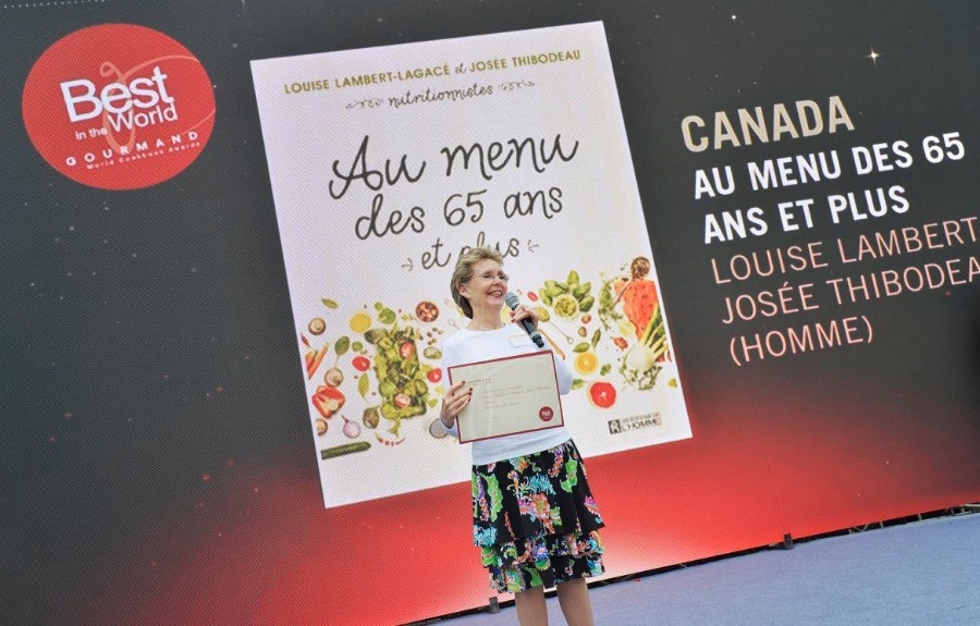 Les Éditions de l'Homme sont fières de vous annoncer que le livre Au menu des 65 ans et plus de Mme Louise Lambert-Lagacé et Mme Josée Thibodeau s'est mérité, le 26 mai 2018, le prix du Best in the World dans la catégorie des seniors, au Gourmand World Cookbook Awards 2017, où plus de 70 pays étaient représentés. La remise du prestigieux prix a eu lieu à Yantai, en Chine. Mme Louise Lambert-Lagacé était présente pour l'événement.