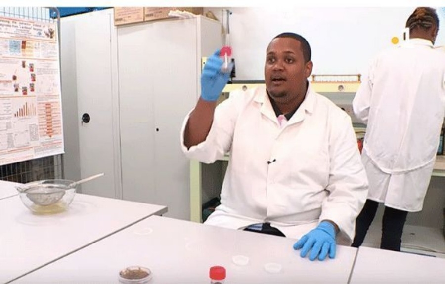 Dans un laboratoire de recherche du campus de Schoelcher en Martinique, une étonnante expérience est en cours. Precilla Lambert, 23 ans, est étudiante en biologie. Christophe Germé 24 ans, est étudiant en physique-chimie. Tous les deux viennent de réussir à transformer les algues sargasses en une solution solide pour en faire du carton ou du bois.