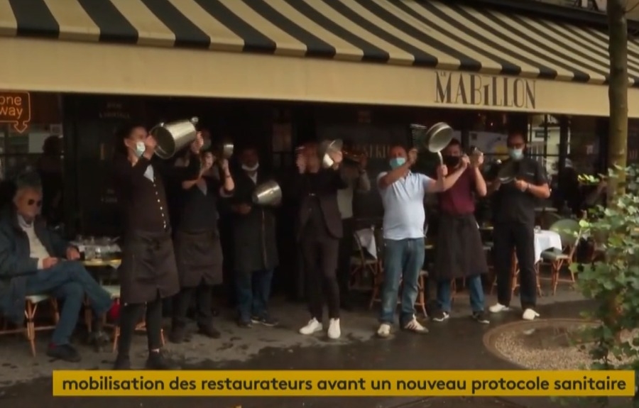 À Paris, Bordeaux (Gironde) ou Lyon (Rhône), vendredi 2 octobre, devant leurs établissements, les restaurateurs ont fait résonner leurs casseroles pour s’opposer à la menace de fermeture pour lutter contre la pandémie de Covid-19. "On stresse parce qu’on se dit que ça se peut que du jour au lendemain on ne puisse plus travailler. On attend juste des réponses claires, nettes et précises", explique Sabrina Oudjedi, serveuse à Paris.