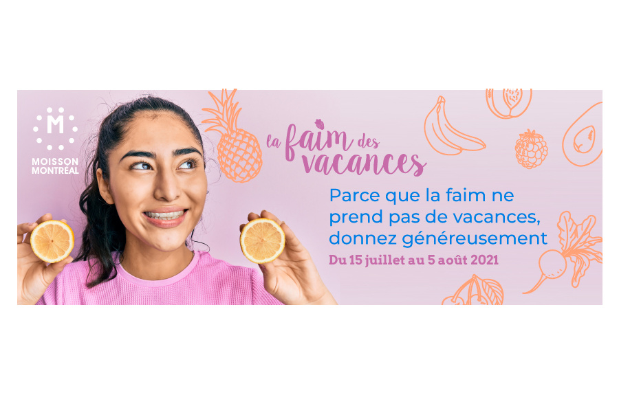 Parce que la faim ne prend pas de vacances et que les besoins sont grands pendant la période estivale, Moisson Montréal invite la population et les entreprises à donner généreusement pour la cause des enfants d’âge scolaire. La campagne promotionnelle « La Faim des Vacances » vise à amasser 60 000 $ et se déroulera jusqu’au 5 août. Elle permettra de soutenir les dizaines d’organismes et banques alimentaires de l’Île de Montréal qui manquent de denrées.