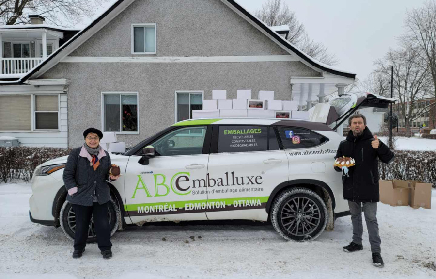 Comme chaque année, Robert Frot et son fils Julien, d’ABC Emballuxe, ont récupéré les bûches de Noël invendues de pâtisseries participantes, afin de remettre ces dernières à la Fondation Sœur Angèle.