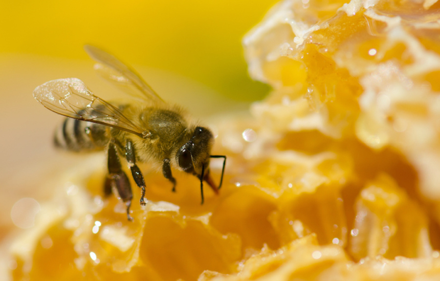 De retour à la ruche, l’abeille régurgite son butin dans la bouche d’une receveuse qui le transfère à son tour à une autre abeille et ainsi de suite pendant 20 minutes jusqu’à ce que la mixture soit déposée dans une alvéole. Afin d’assurer des conditions de chaleur et d’aération idéales pour réduire la part d’eau du nectar, des dizaines de milliers d’abeilles bourdonnent et battent des ailes dans la ruche. Quelques levers de soleil plus tard, je ne contiens plus que 18% d’eau et les abeilles m’enferment dans une cellule de cire dorée.