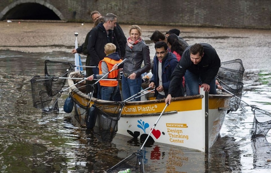 Les bouteilles en plastique sont séparées des autres déchets pour servir de matière première à la construction de meubles de bureau et de bateaux, qui sont eux-mêmes utilisés pour les tours sur les canaux.