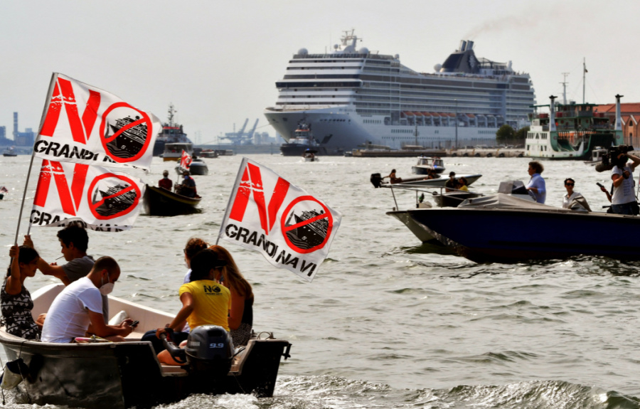 Les défenseurs de l’environnement et du patrimoine culturel accusent les grosses vagues engendrées par ces navires, longs de plusieurs centaines de mètres et hauts de plusieurs étages, d’éroder les fondations de la Sérénissime, et de menacer le fragile écosystème de sa lagune. Le débat avait été relancé le mois dernier avec le retour des croisières après des mois de pandémie qui avaient rendu aux Vénitiens calme et air pur, tout en les privant d’importants revenus.