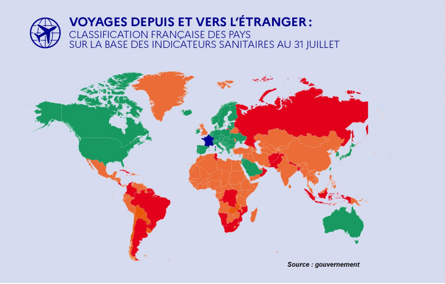 L’Echo touristique a mis à jour le planisphère établi par le gouvernement français, pour les voyages depuis et vers l’étranger. Nous publions aussi les règles établies pour les pays verts, orange, rouges.