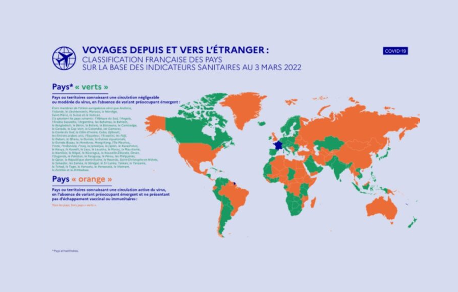L’Echo touristique a mis à jour le planisphère établi par le gouvernement français, pour les voyages depuis et vers l’étranger. Nous publions aussi les règles établies pour les pays verts, orange, rouges.