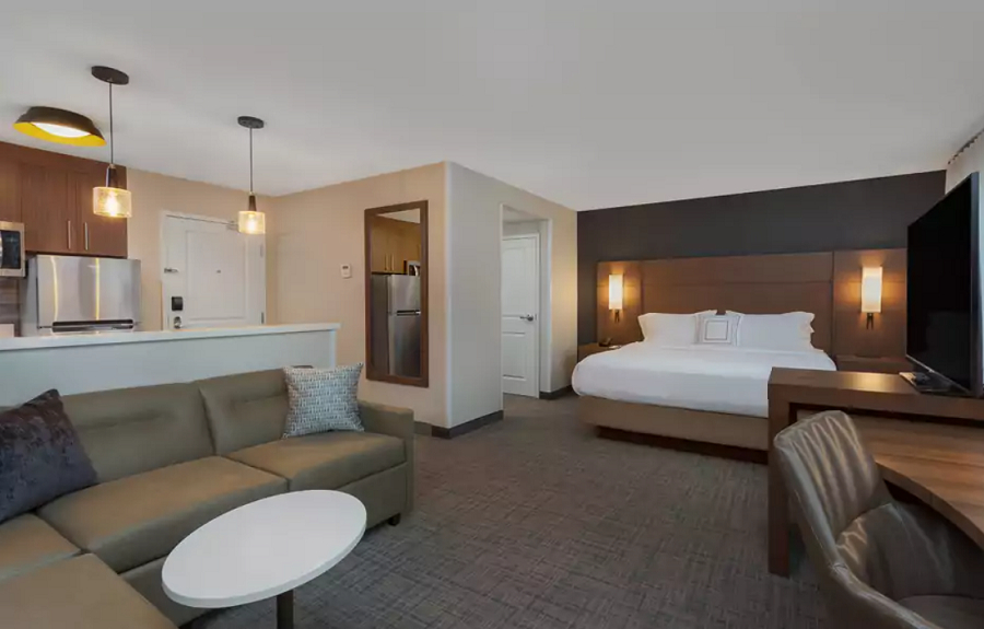 Construit il y a plus de 30 ans, le Quality Suites de Laval, situé proche du Cosmodôme et du Carrefour Laval, avait perdu son lustre d’antan. Palm Holdings, qui a acheté la propriété au sein d’un lot de 12 hôtels en mars 2018, a décidé de recommencer à neuf. « Avec le temps, l’entreprise Palm Holdings s’est transformée et s’est mise en mode acquisition d’hôtels. Elle crée de la valeur à travers les rénovations, offrant ainsi un investissement plus rentable à long terme », explique Linda Taub, directrice générale régionale pour Palm Holdings. C’est ainsi qu’est née l’idée d’ajouter une offre pour les gens d’affaires de passage en leur proposant le Residence Inn, un hôtel pour des séjours de quelques jours ou quelques semaines.